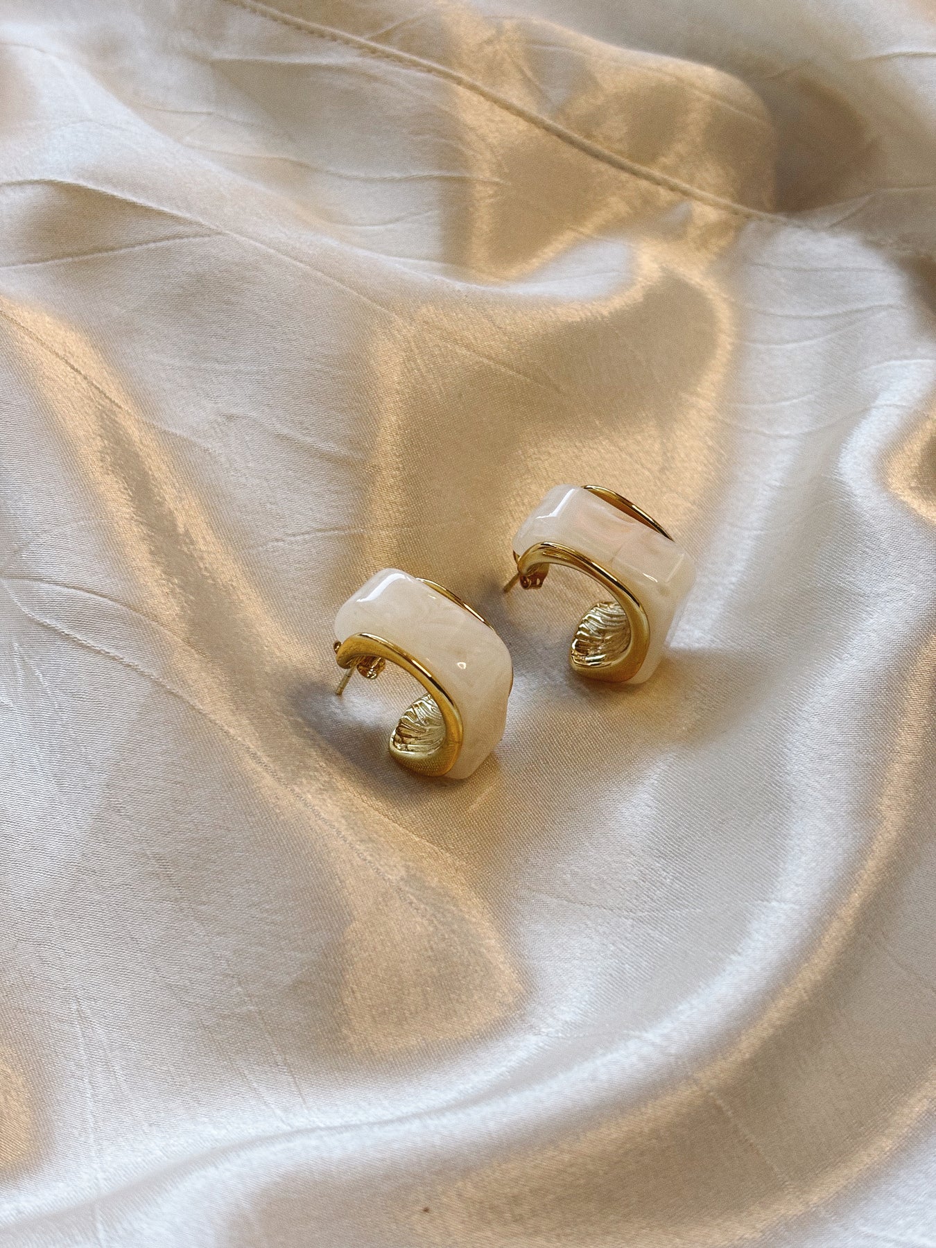 Statement Earrings | Elegant vibes | Gold/Cream | 100% stainless steel |